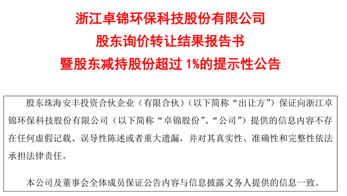 股東詢價轉(zhuǎn)讓結(jié)果報告書暨股東減持股份超過1%的提示性公告