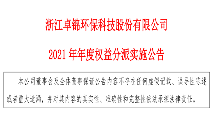 2021年年度權益分派實施公告